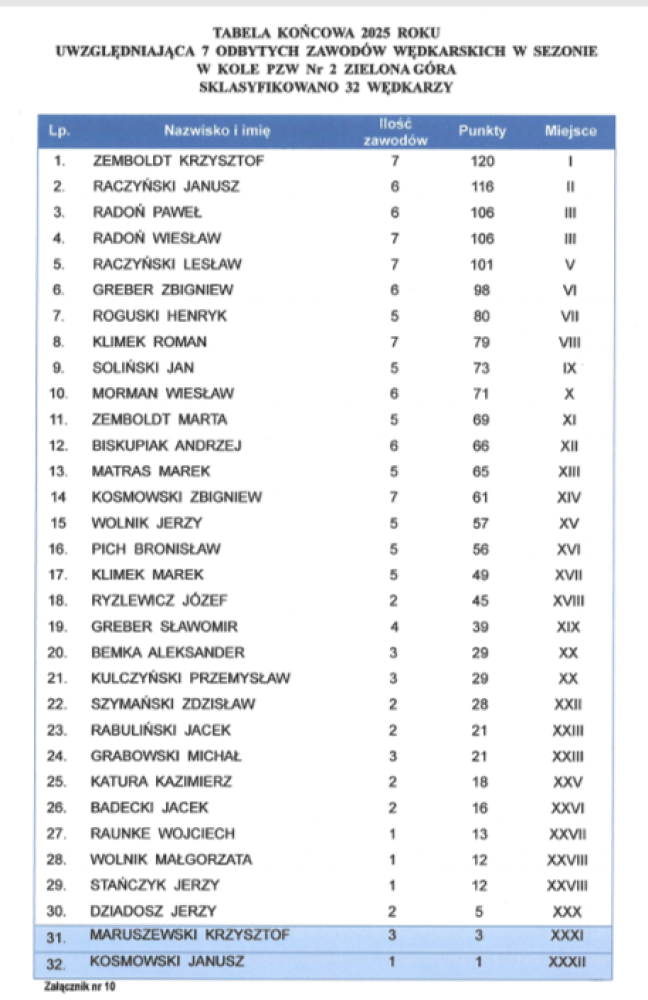 Klasyfikacje Grand Prix 2025 Koła PZW nr 2